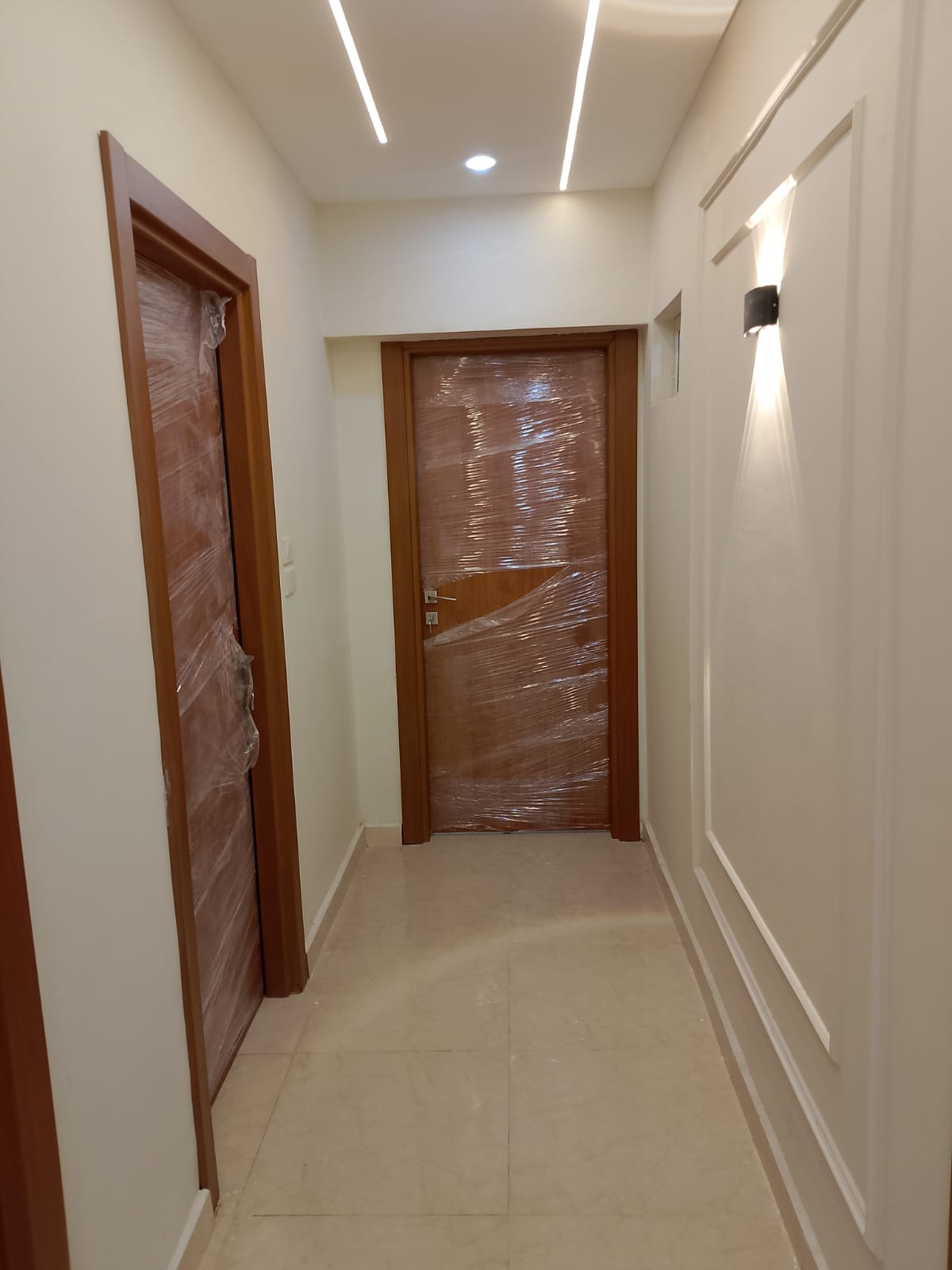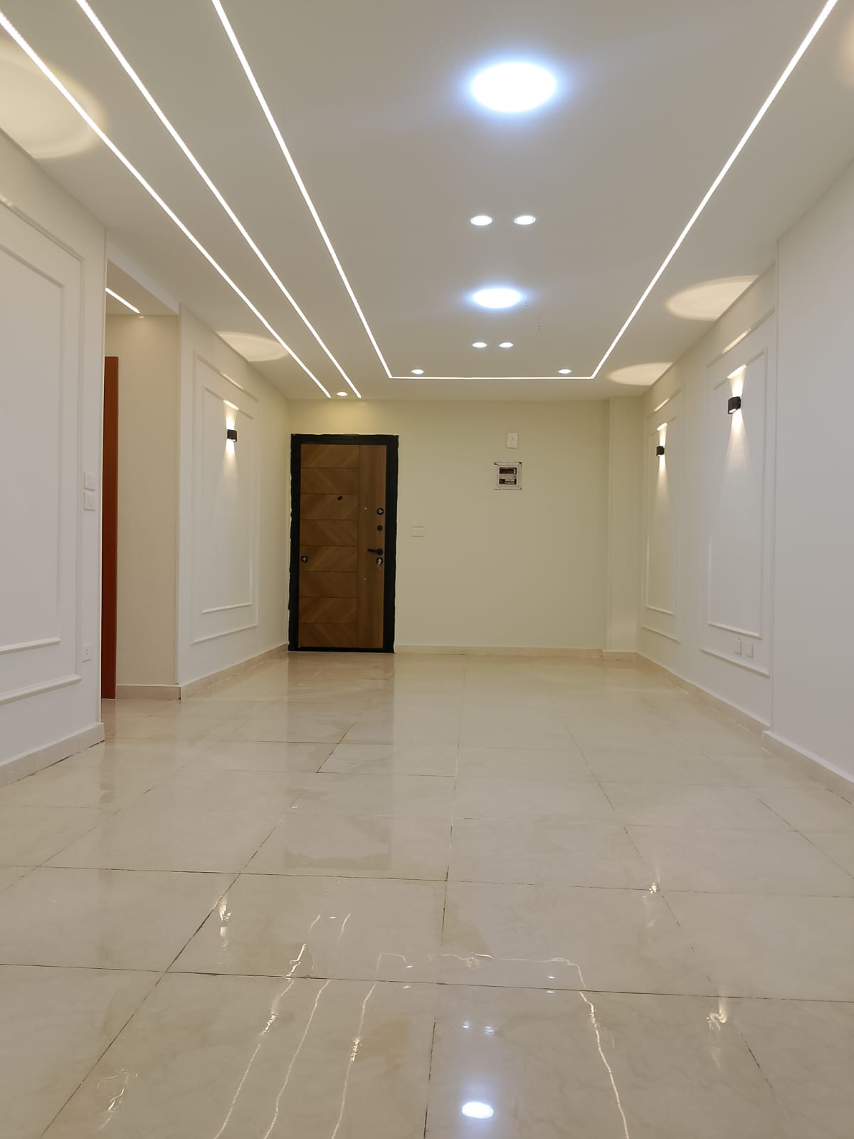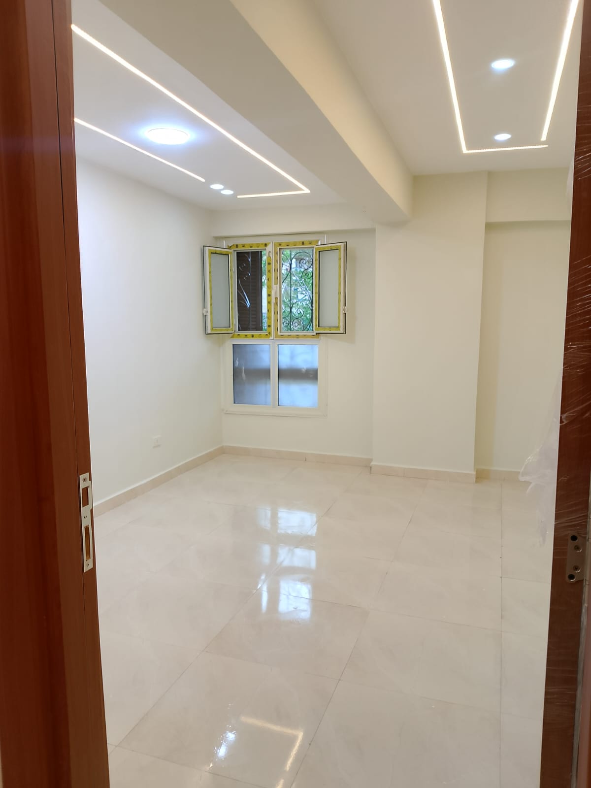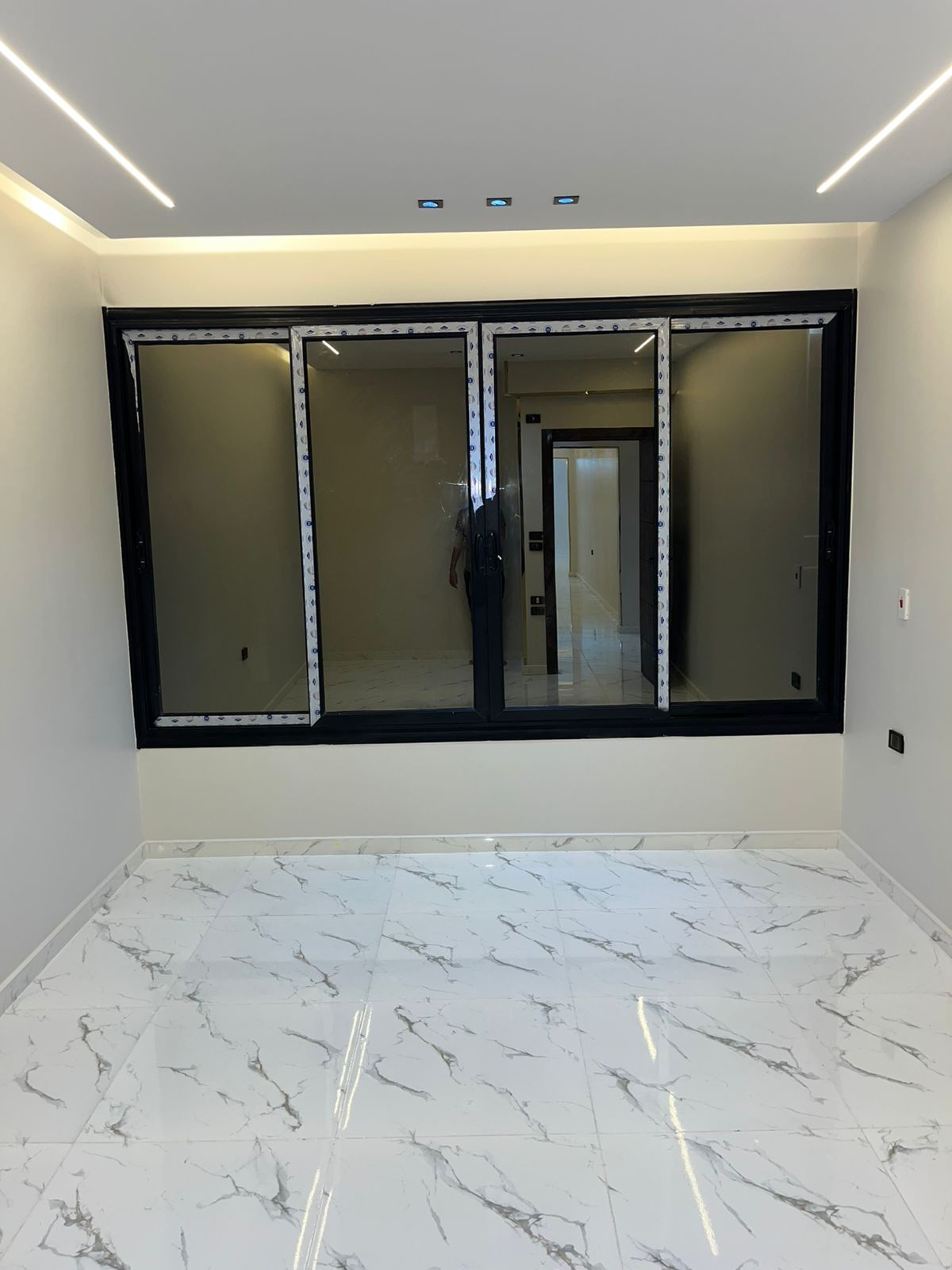 4. التشطيبات النهائية: تركيب الأرضيات (بورسلين، رخام، HDF)، والدهانات بأحدث التقنيات والألوان الكمبيوتر، وتركيب الأبواب والشبابيك (Alumetal/UPVC).