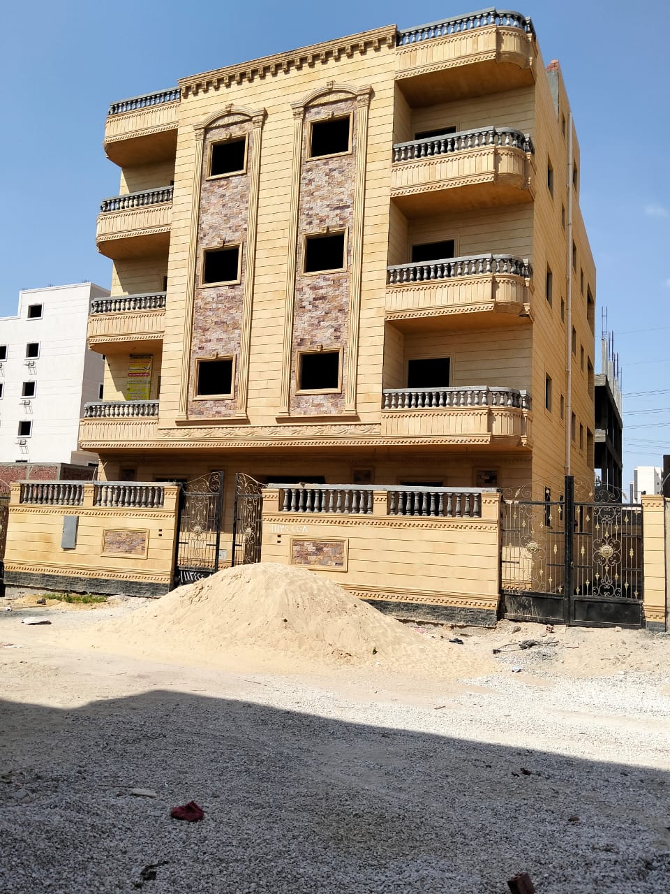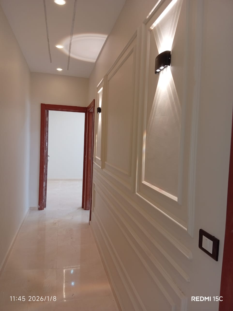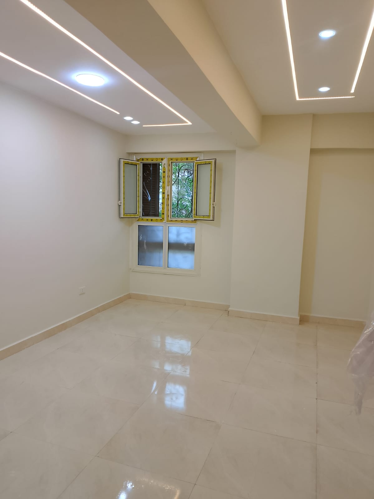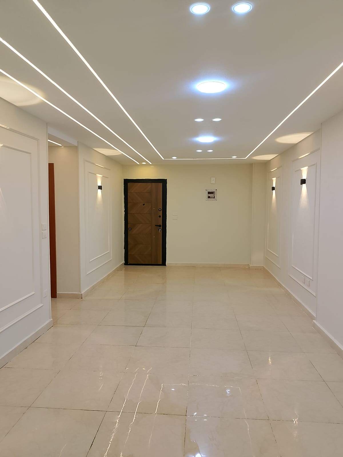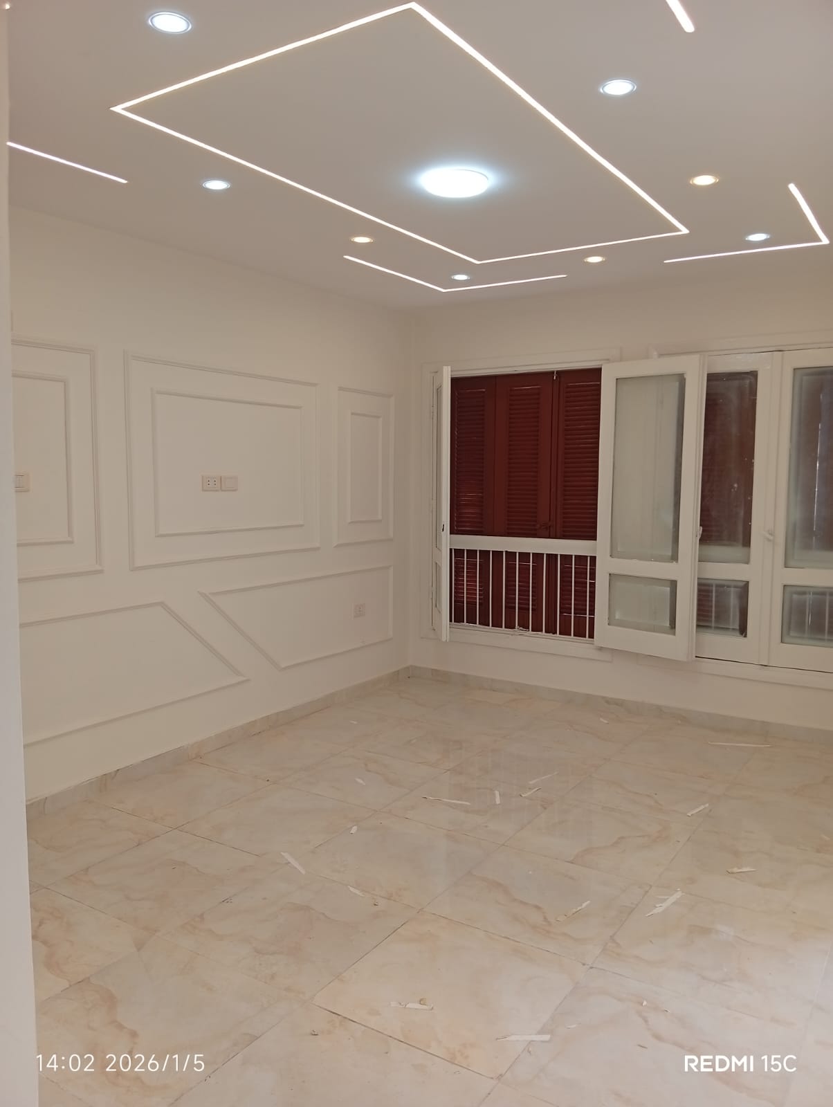 4. التشطيبات النهائية: تركيب الأرضيات (بورسلين، رخام، HDF)، والدهانات بأحدث التقنيات والألوان الكمبيوتر، وتركيب الأبواب والشبابيك (Alumetal/UPVC).