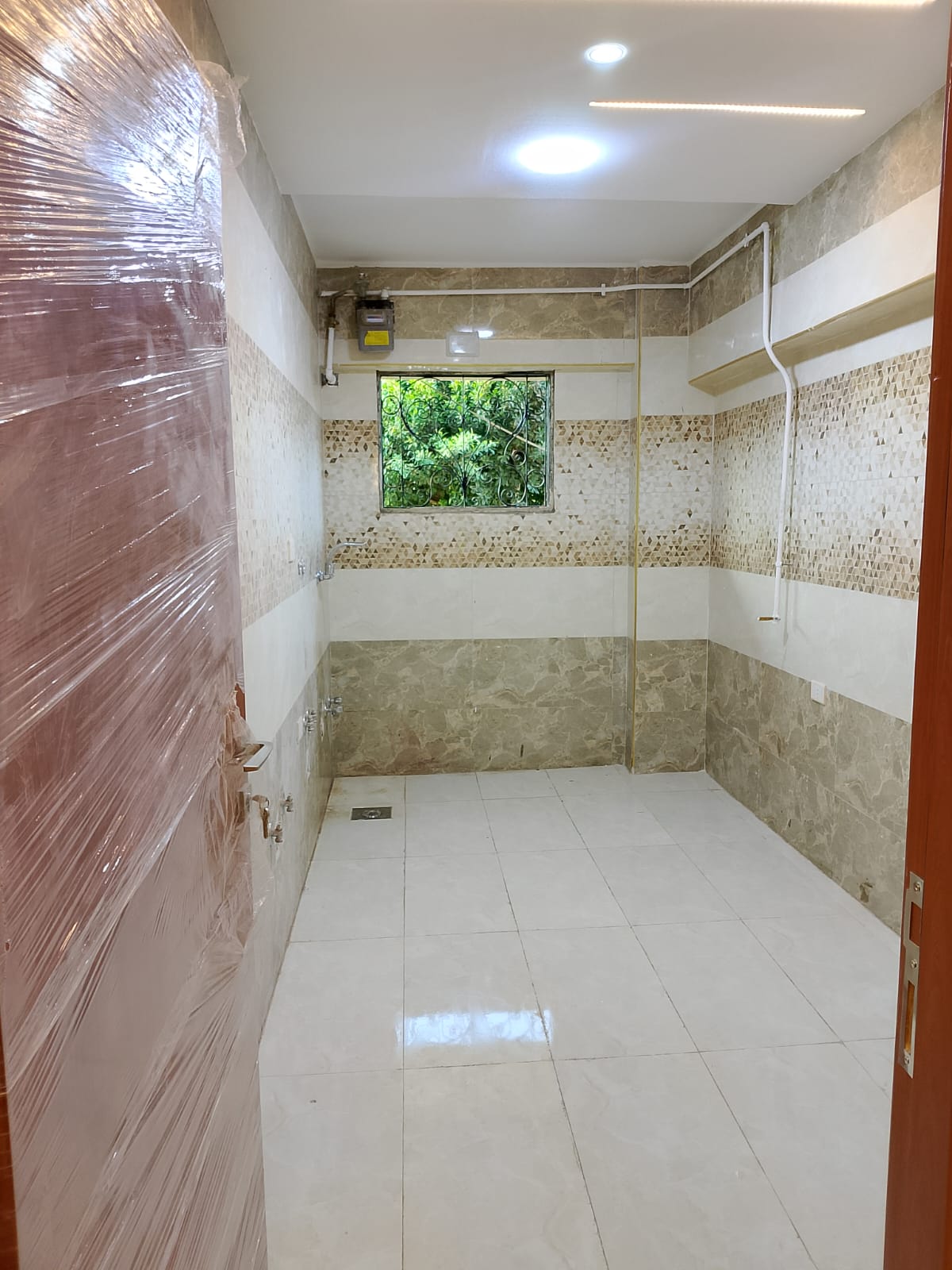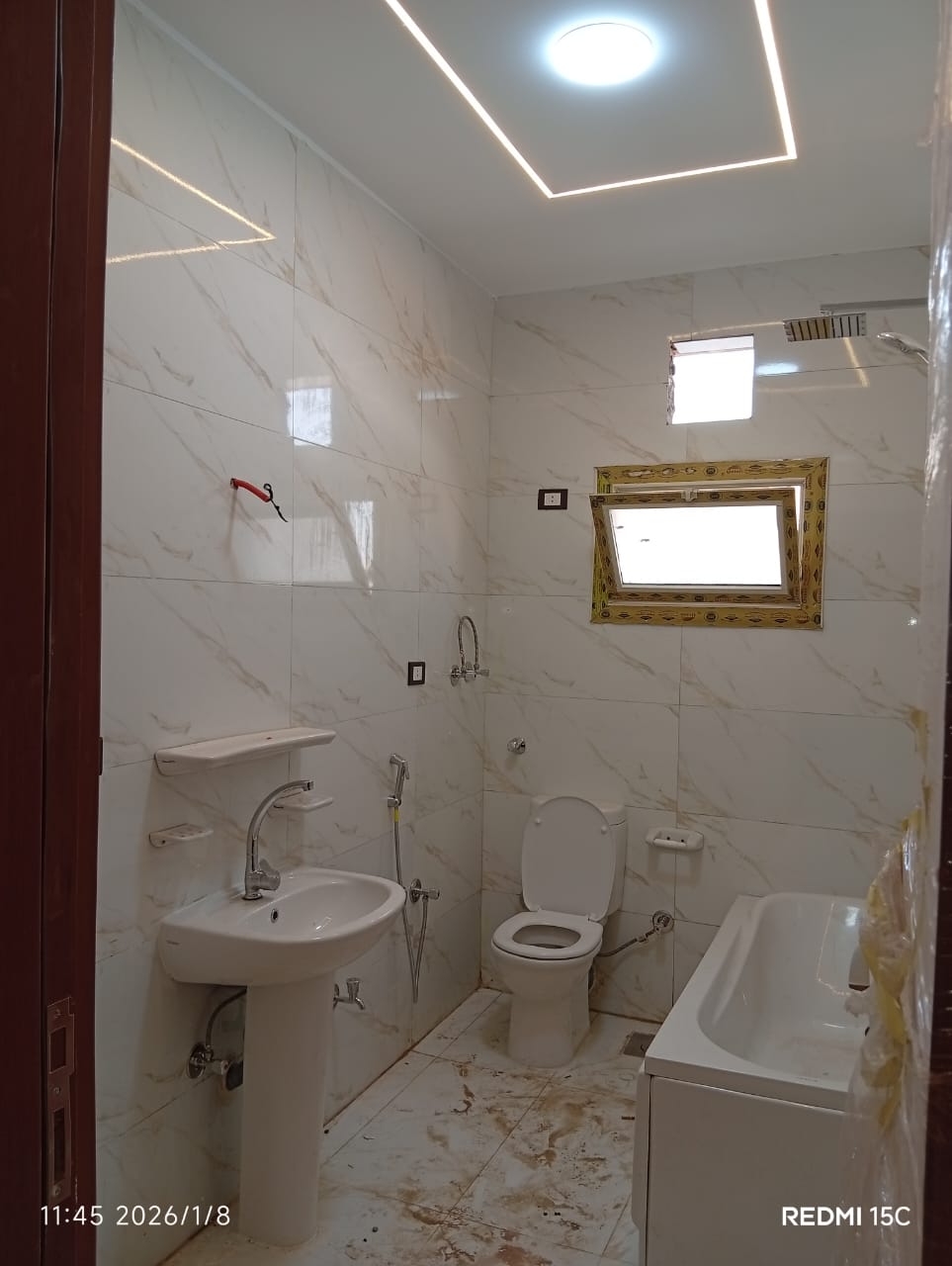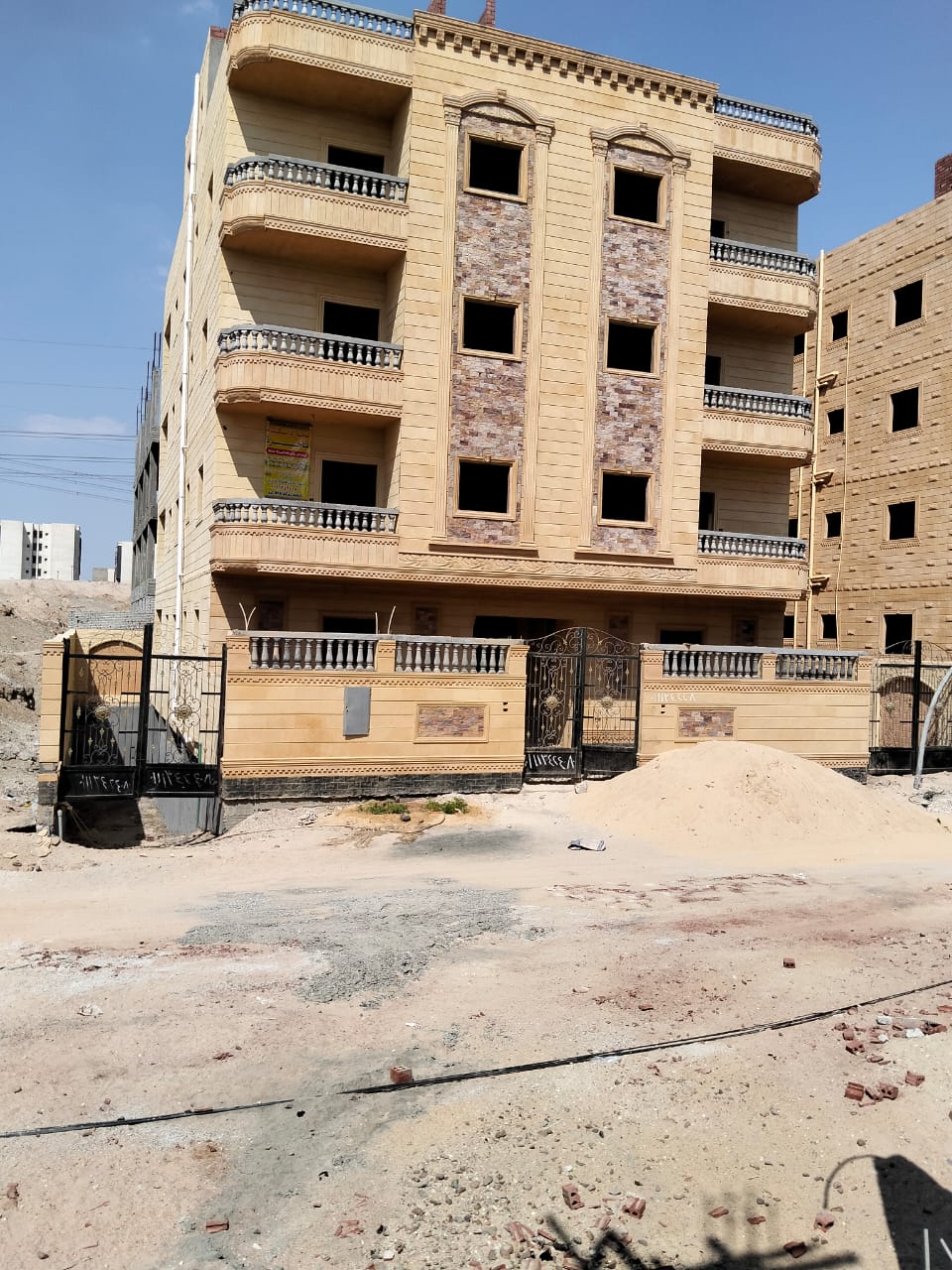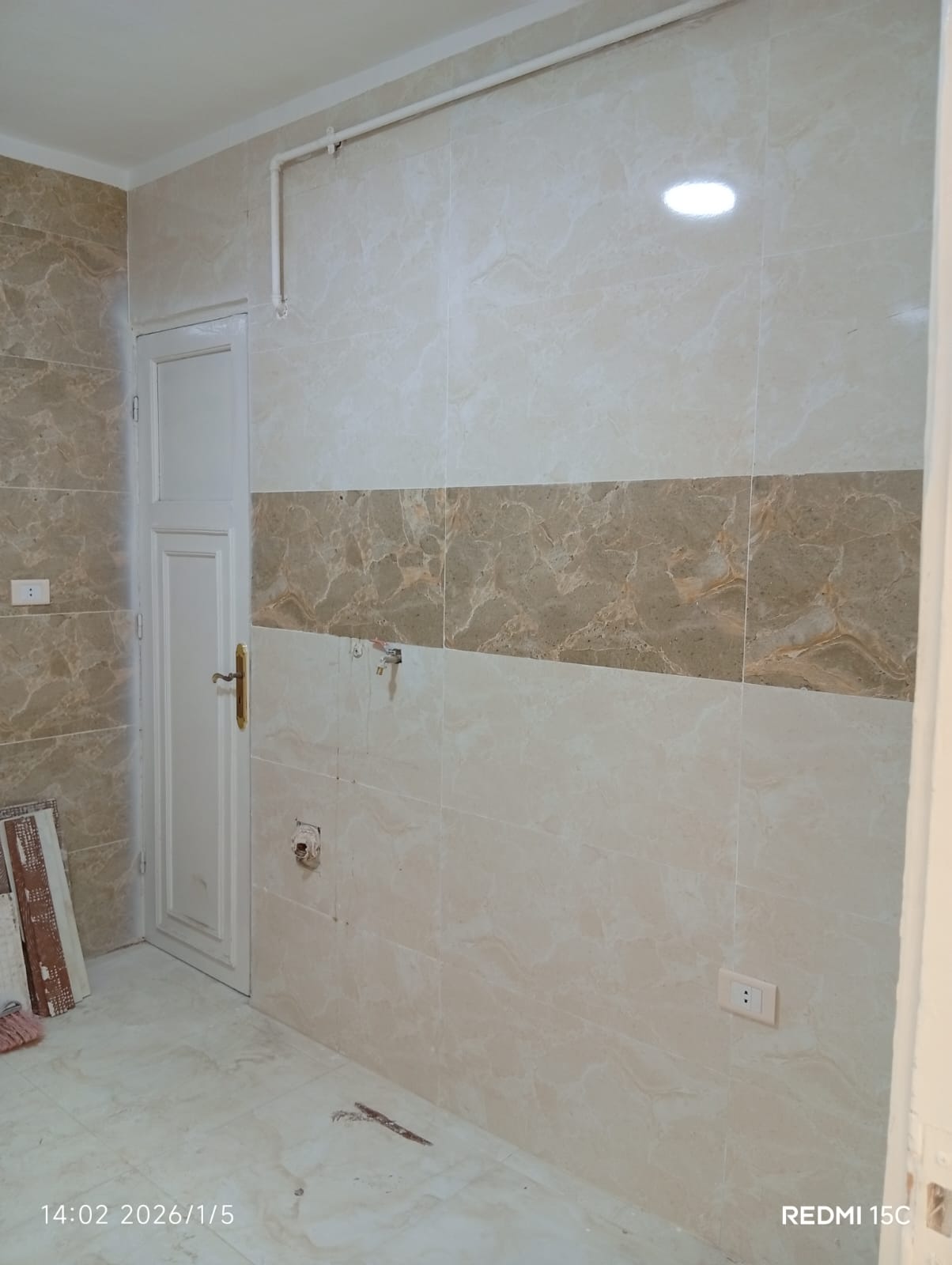 4. التشطيبات النهائية: تركيب الأرضيات (بورسلين، رخام، HDF)، والدهانات بأحدث التقنيات والألوان الكمبيوتر، وتركيب الأبواب والشبابيك (Alumetal/UPVC).