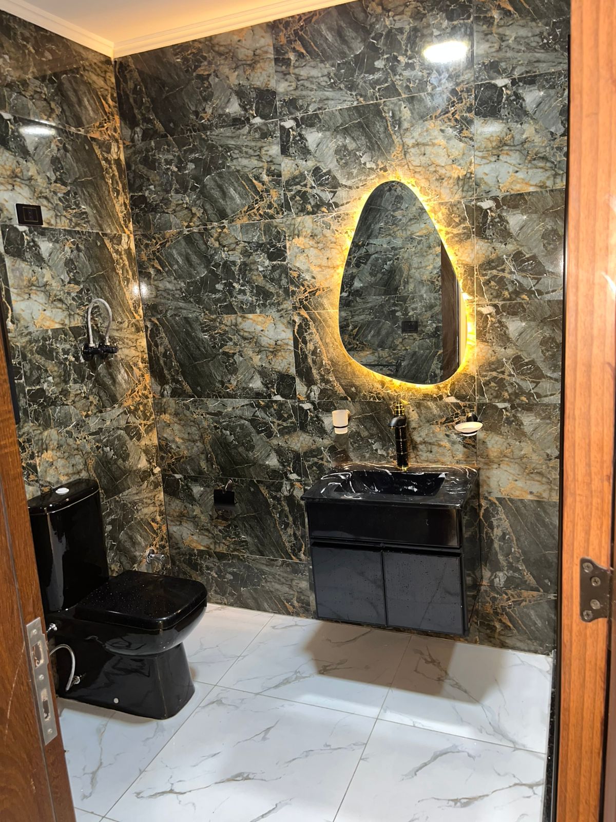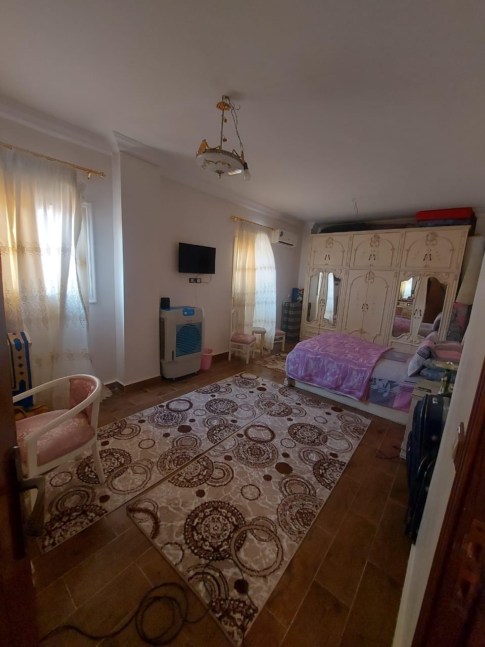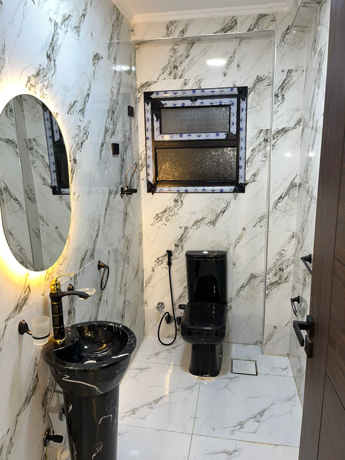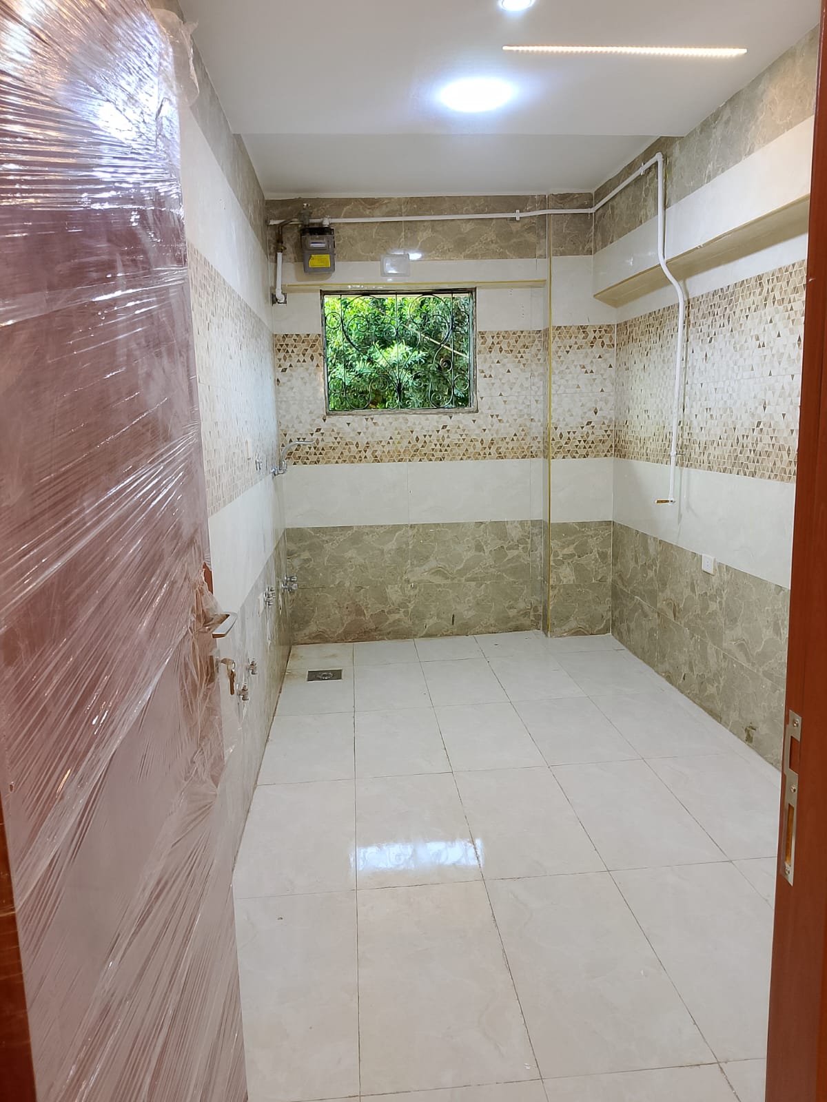 4. التشطيبات النهائية: تركيب الأرضيات (بورسلين، رخام، HDF)، والدهانات بأحدث التقنيات والألوان الكمبيوتر، وتركيب الأبواب والشبابيك (Alumetal/UPVC).