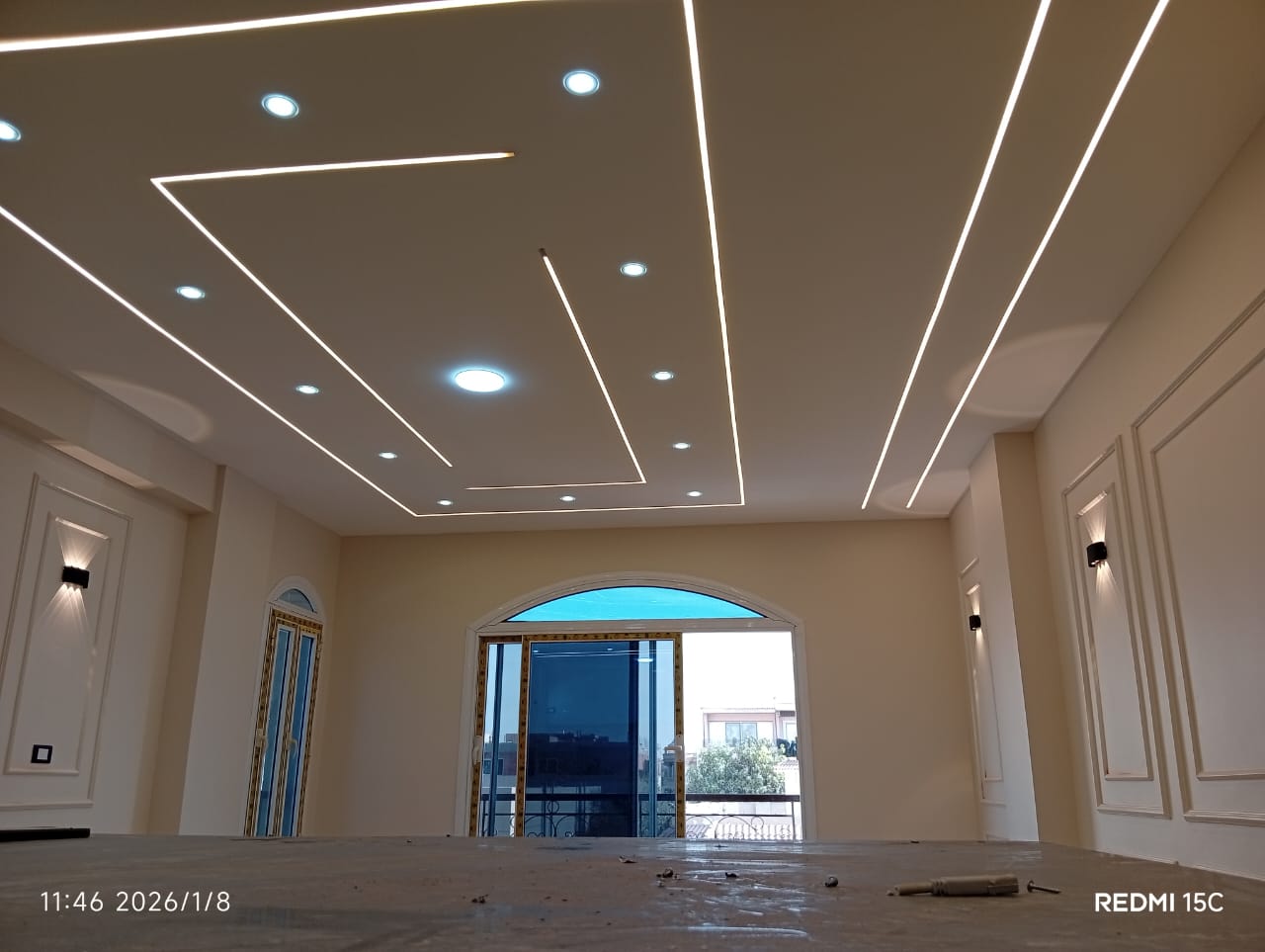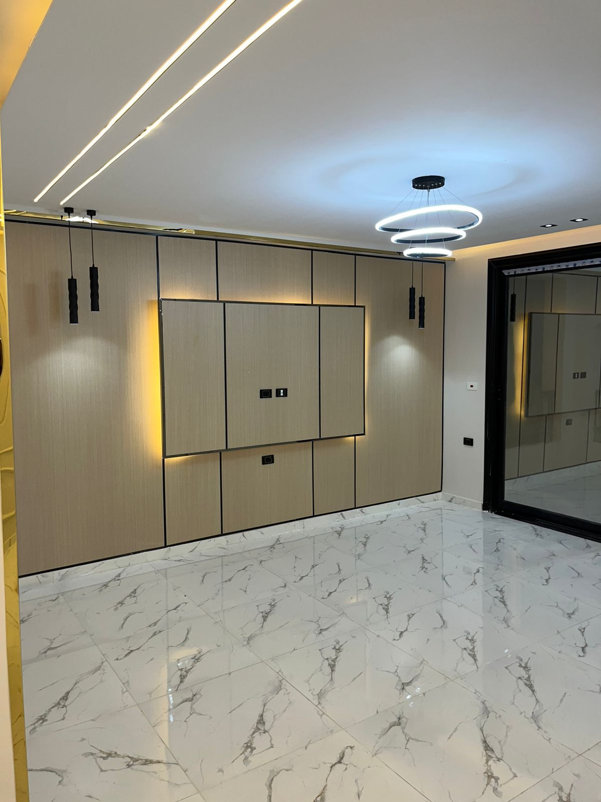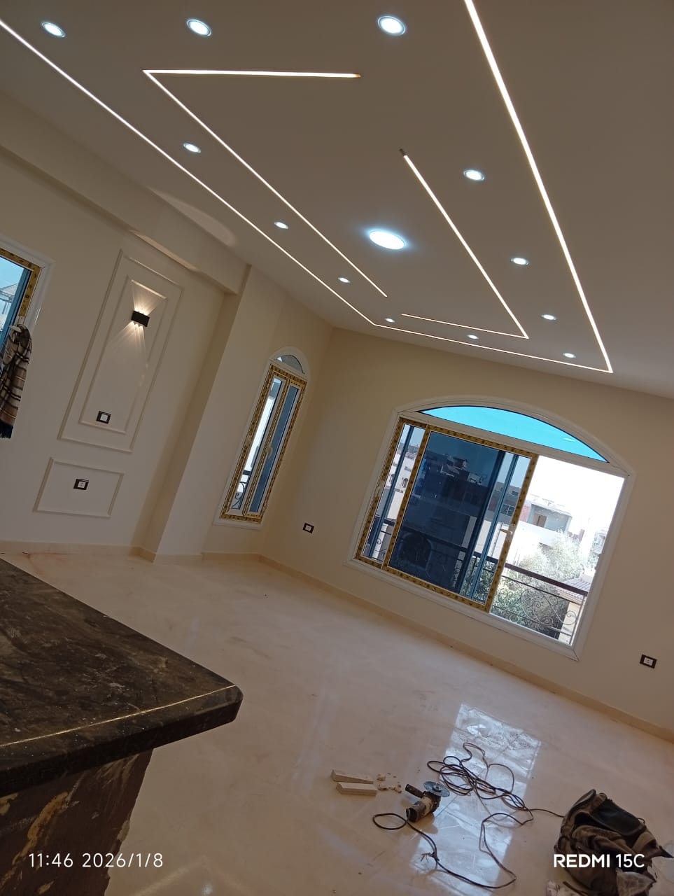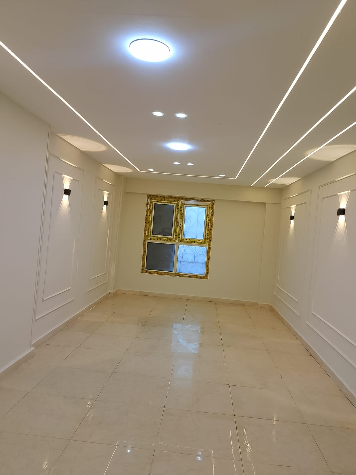 3. الديكور واللمسات الجمالية: تنفيذ أعمال الجبس بورد، الأسقف المعلقة، وتوزيع الإضاءة بشكل مدروس يبرز جمال الأثاث والمساحات.